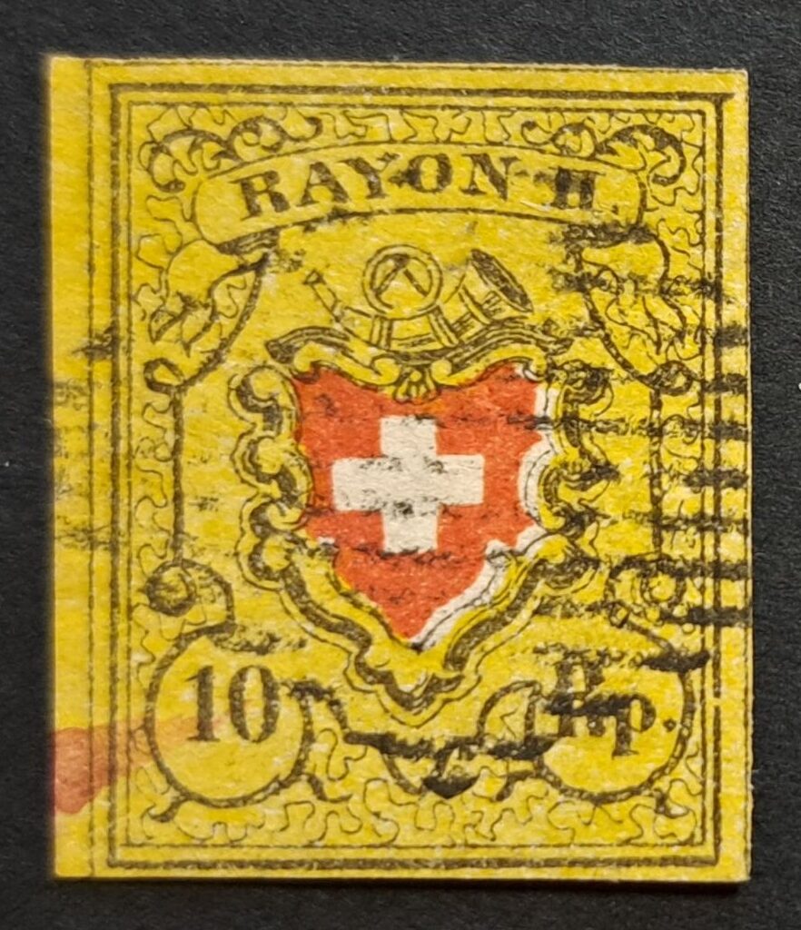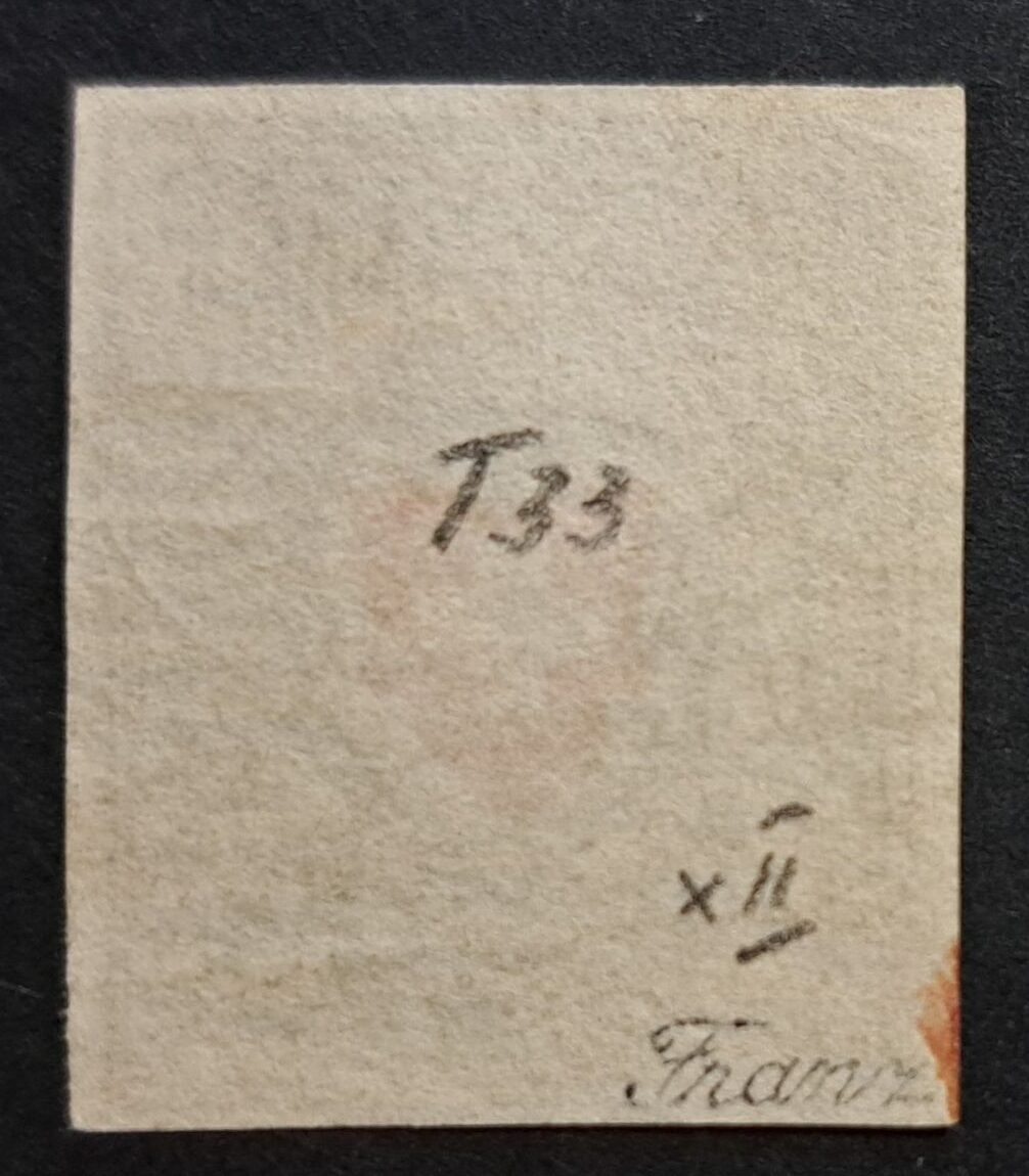Rötelspur unten links sowie Abart leicht verschobener Rotdruck nach links.